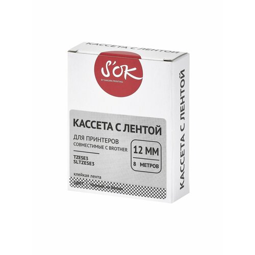Кассета с лентой TZESE3 для Brother, на белом, ширина 12мм, длина 8м , SOK