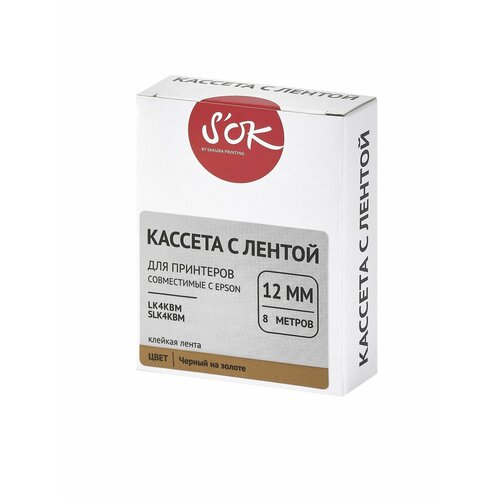 Кассета с лентой K4KBM для Epson, цвет на золотом, ширина 12мм, длина 8м SOK