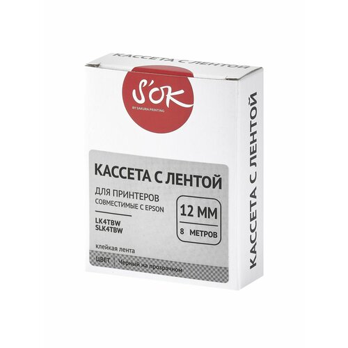Кассета с лентой S'OK by Sakura Printing C53S654015 (LK4TBW) для Epson, на прозрачном, 12мм/8м, повышенная клейкость