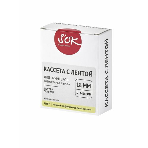 Кассета с лентой K5YBF для Epson, цвет на флуоресцентном желтом, ширина 18мм, длина 5м SOK