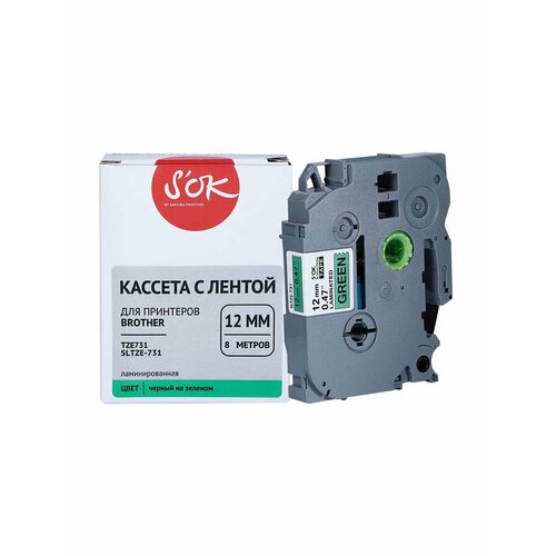 Кассета с лентой TZE-731 для Brother PT-E550WVP, PT-H110, PT-P700 S'OK черный на зеленом, 12мм/8м, наклейка