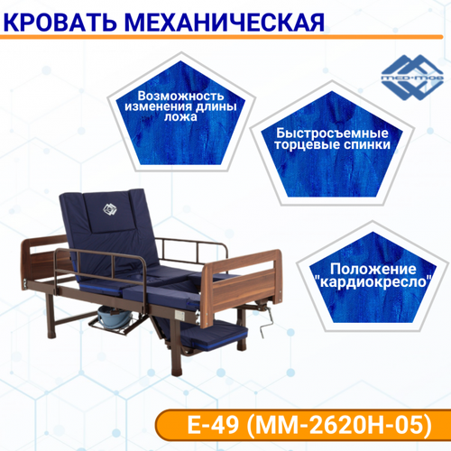 Кровать для лежачих больных Мед-Мос DB-6, 3 функции, с удлинением ложа, пластик, с матрасом, электрическая