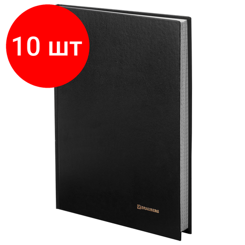 Комплект 10 шт, Книга учета 96 л, клетка, твердая, бумвинил, блок офсет, А4 (200х290 мм), BRAUBERG, черная, 130223
