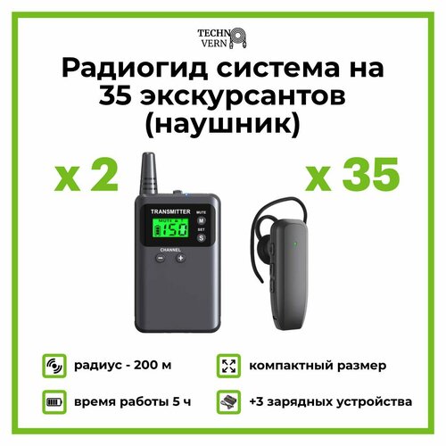 Радиогид система на 35 экскурсантов 919R, в виде наушников, радиус 200 м