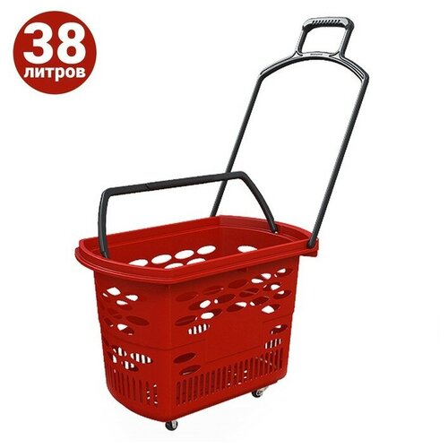 Корзина-тележка на 4 колесах пластиковая, 38 л, с 2 пластиковыми ручками, цвет красный