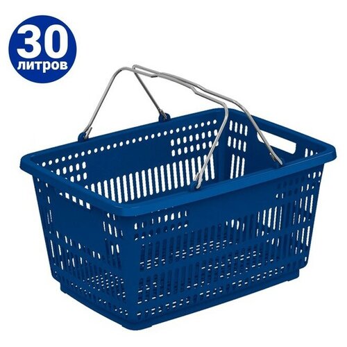 Корзина покупательская пластиковая, 30л, 2 металлические ручки, цвет синий