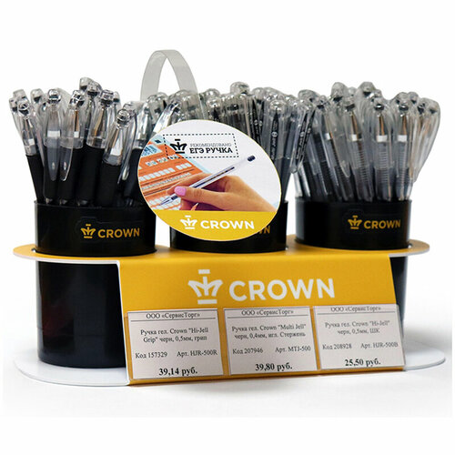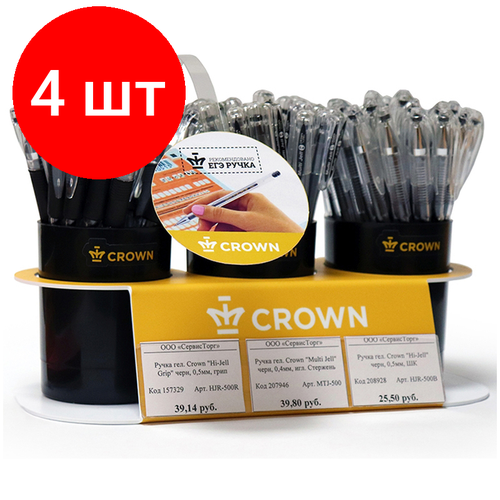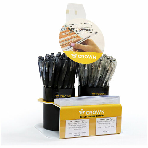 Комплект 4 шт, Прикассовый дисплей Crown для ручек, 3 стакана, воблер ЕГЭ