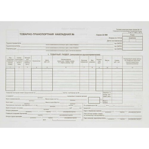 Комплект бланков учета движения товаров Attache Товарно-транспортная накладная форма 1-Т