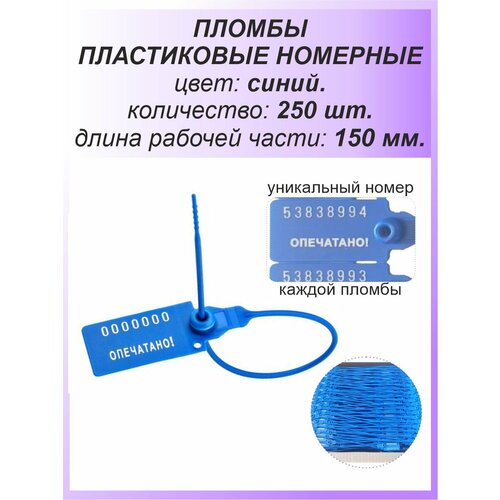 Пломбы пластиковые номерные авангард, самофиксирующиеся, длина 220 мм, синие, комплект 50 шт, в наборе 1 компл.