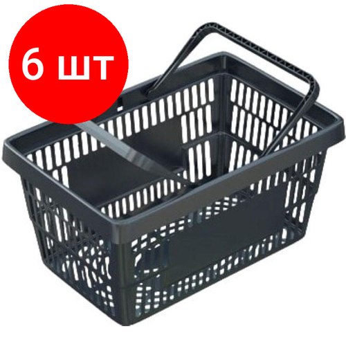 Комплект 6 штук, Корзина покупательская EVR_CLASSIC пластик, с 2-мя пл. ручками 20л