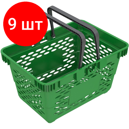 Комплект 9 штук, Корзина покупательская EVR_CLASSIC пластик, с 2-мя пл. ручками 20л
