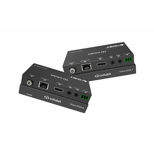 Комплект удлинителя сигнала HDMI Infobit [iTrans E70S] HDBaseT extenders (Tx and Rx), HDMI 10.2Gbps, 70m for 1080p, 40m for 4K/30Hz. Bi-directional IR and RS232, POC and HDCP 2.2.