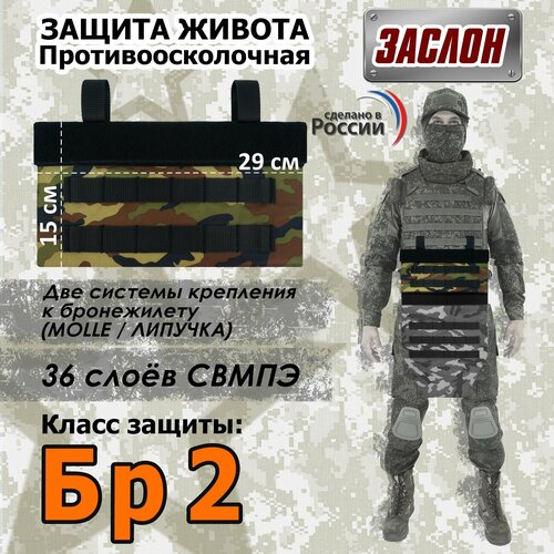 Защита живота противоосколочная "Заслон". Класс защиты Бр 2. Цвет: камуфляж с черными стропами.