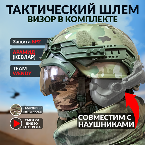 Шлем Арамид тактический полуухий с визором текстура мул