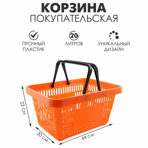 Корзина покупательская пластиковая, 20л, 2 пластиковые ручки