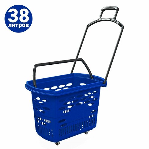 Корзина-тележка на 4 колесах пластиковая, 38 л, с 2 пластиковыми ручками, цвет синий