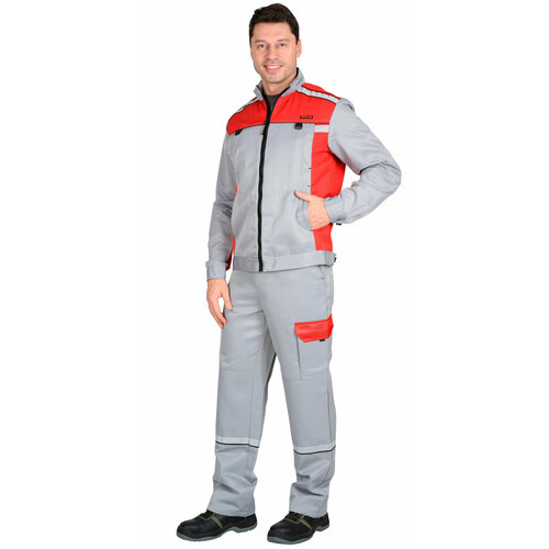 Костюм "Практик-1"летняя: куртка короткая, полукомбинезон, светло-серый с красным р. 60-62/170-176 / Костюм рабочий мужской / Костюм мужской