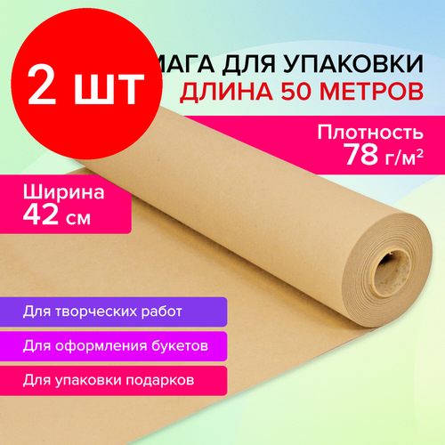 Комплект 2 шт, Крафт-бумага в рулоне, 420 мм x 50 м, плотность 78 г/м2, Марка А (Коммунар), BRAUBERG, 440184