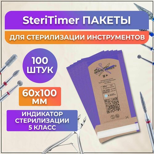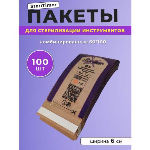 Крафт-пакеты для стерилизации ногтей SteriTimer, 60 х 100мм, 1 упаковка - 100 штук, комбинированные прозрачные