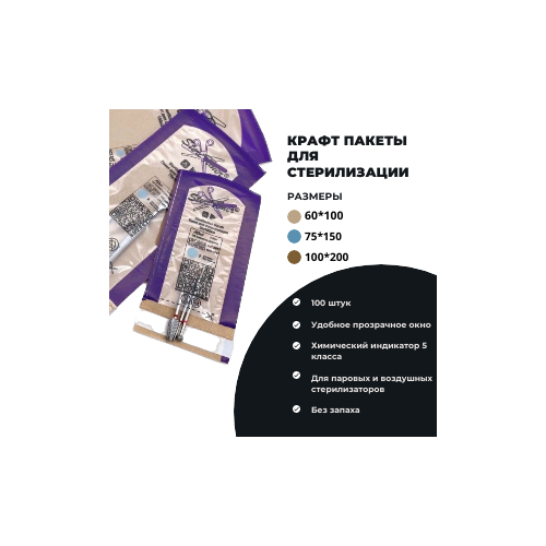 Timer. Подходят для стерилизации металлических инструментов, фрез, расходных материалов, пинцетов и мн. Др. Наши крафт-пакеты для стерилизации инструмента имеют самый современный и надежный химический индикатора 5 класса который отвечает всем современным требованиям ГОСТ (можно использовать во всем медицинских и косметических учреждениях). Тем самым вы будете уверенны в качестве всех видов воздушной и паровой обработки. (В том числе сухожара). Имеющаяся самоклеящаяся полоса с индикатором, обеспечат надежность и целостность содержимого. Удобная полоса меняющая цвет даст сигнал об окончании процедуру стерилизации. А прочная прозрачное вставка окно позволяет увидеть запечатанный инструмент, не нарушая целостность пакета. Хранения стерильных инструментов в запечатанном виде 20 суток. Универсальные подходят как для воздушного, так и парового аппаратов стерилизации типа су