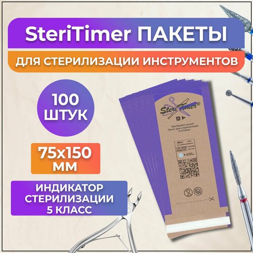 Пакетики для стерилизации инструментов с окошком SteriTimer 75х150мм, 100 штук, 1 упаковка