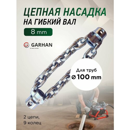 Двойная цепная насадка на гибкий вал 8mm для труб до 100mm