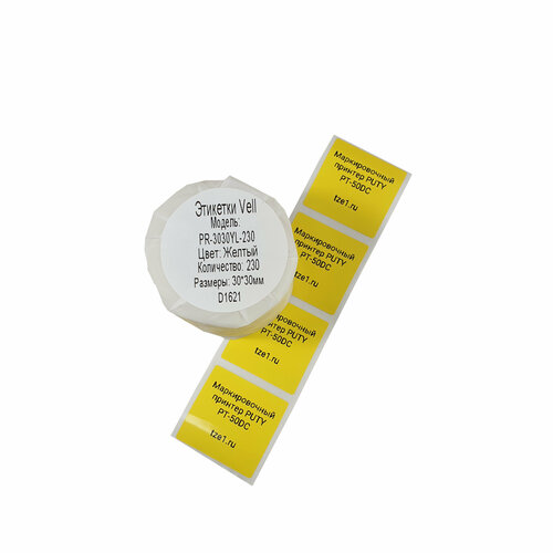 Этикетки Vell для Puty PT-50DC/PT-82DC (30 мм х 30 мм, жёлтые, 230 шт)