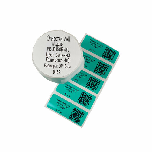 Этикетки Vell для Puty PT-50DC/PT-82DC (30 мм х 15 мм, зелёные, 400 шт)