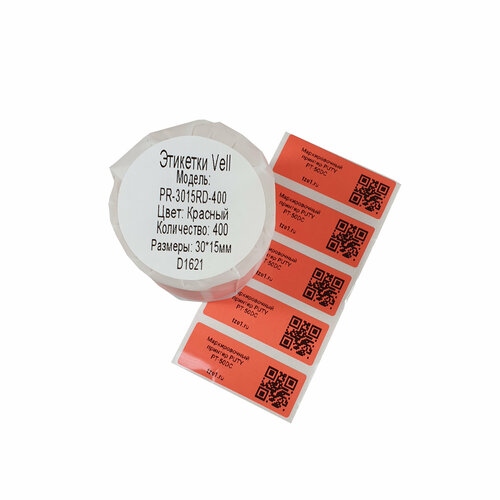 Этикетки Vell для Puty PT-50DC/PT-82DC (30 мм х 15 мм, красные, 400 шт)