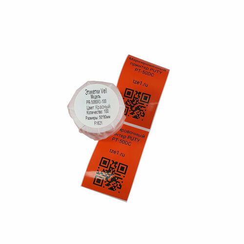 Этикетки Vell для Puty PT-50DC/PT-82DC (50 мм х 80 мм, красные, 100 шт)
