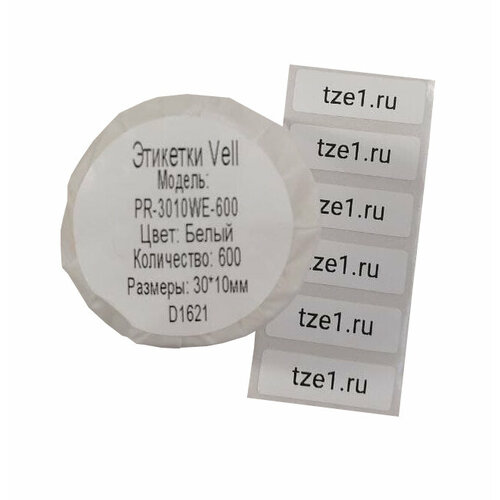 Этикетки Vell для Puty PT-50DC/PT-82DC (30 мм х 10 мм, белые, 600 шт)