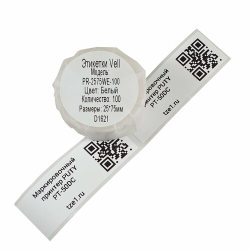 Этикетки Vell для Puty PT-50DC/PT-82DC (25 мм х 75 мм, белые, 100 шт)