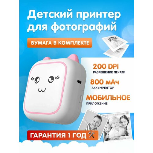 Портативный мини принтер для телефона Kid Joy, 200DPI, Bluetooth 5.1, APP (M5) White+Pink