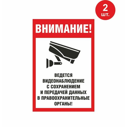 Наклейка внимание! Ведется видеонаблюдение 20Х30 см 4 шт красная