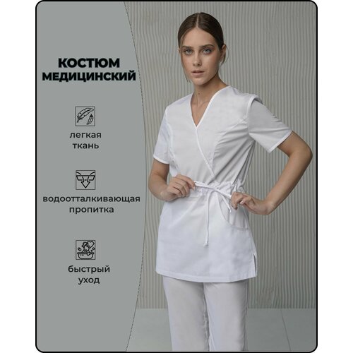 Костюм (комплект) медицинский женский хирургический куртка затягивающийся пояс брюки на резинке размер 48 спецодежда медицинская одежда