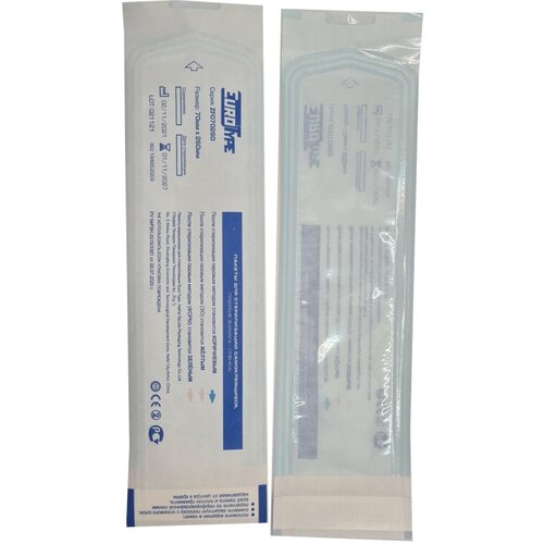 Изготовлены из прозрачной многослойной полимерной плёнки Полипропилен/Полиэстер в сочетании с бумагой медицинской высокопрочной непрозрачной плотной.