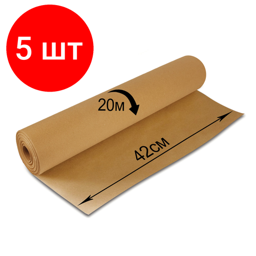 Комплект 5 шт, Крафт-бумага в рулоне, 420 мм x 20 м, плотность 78 г/м2, Марка А (Коммунар), BRAUBERG, 440144