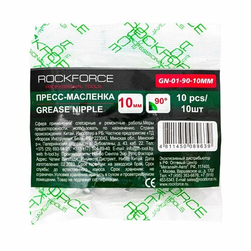 Пресс-масленка 10мм угловая (90град.), комплект 10 шт. RockForce RF-GN-01-90-10MM