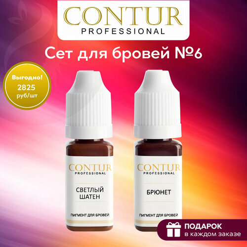 Сет пигментов №6 для перманентного макияжа и татуажа бровей Contur Professional