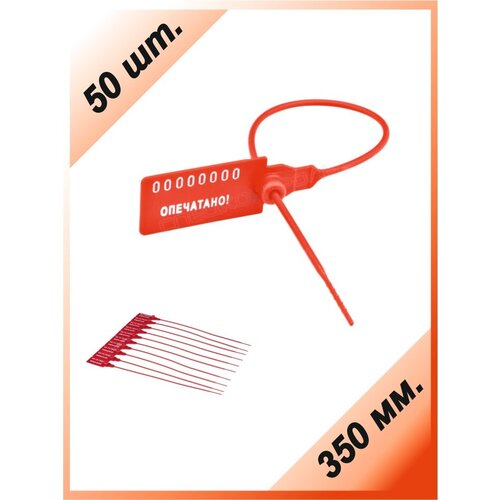 Пломбы пластиковые 50 шт. номерные "универсал", самофиксирующиеся, длина рабочей части 350 мм, цвет: