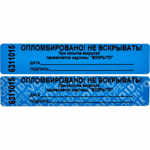 Пломба наклейка 66?22 мм синяя (1000 штук в упаковке)