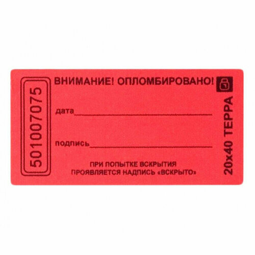 Пломба наклейка Терра 20/40 красная (1000 штук в упаковке)
