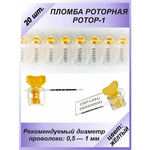 Роторная номерная пломба, 20 шт. пластиковая "РОТОР-1", цвет: жёлтый