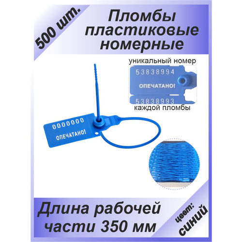 Пломбы пластиковые 500 шт. номерные "универсал", самофиксирующиеся, длина рабочей части 350 мм, цвет: