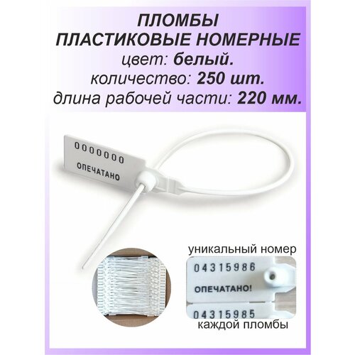 Пломбы пластиковые 250 шт. номерные "универсал", самофиксирующиеся, длина рабочей части 220 мм, цвет: