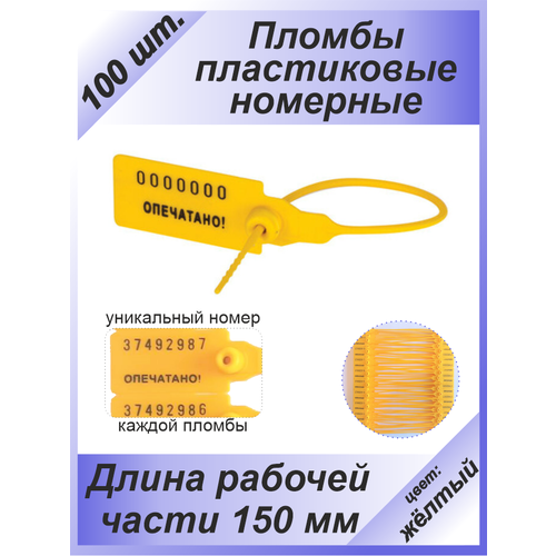 Пломбы пластиковые 100 шт. номерные "универсал", самофиксирующиеся, длина рабочей части 150 мм, цвет: