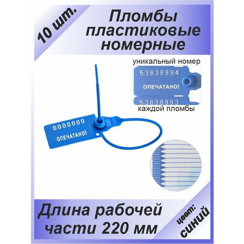 Пломбы пластиковые 20 шт. номерные "универсал", самофиксирующиеся, длина рабочей части 220 мм, цвет: синий