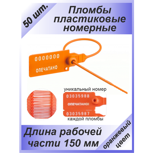 Пломбы пластиковые 50 шт. номерные "универсал", самофиксирующиеся, длина рабочей части 150 мм, цвет: