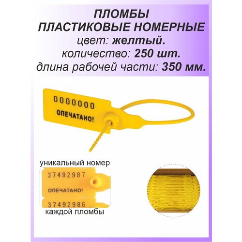 Пломбы пластиковые 250 шт. номерные "универсал", самофиксирующиеся, длина рабочей части 350 мм, цвет: