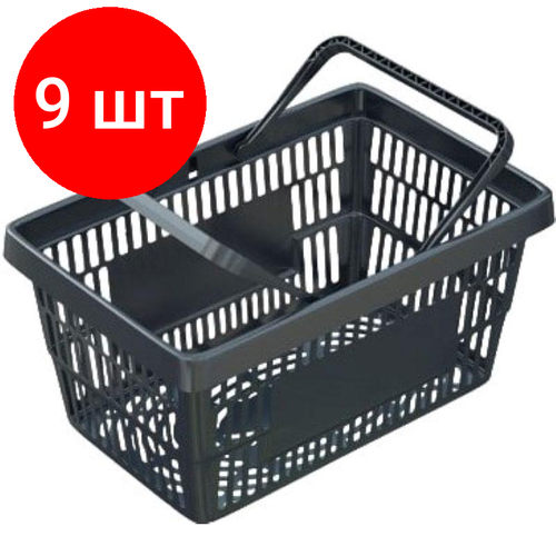 Комплект 9 штук, Корзина покупательская EVR_ROCK пластик. усилен. с 2 пл. ручками 20л